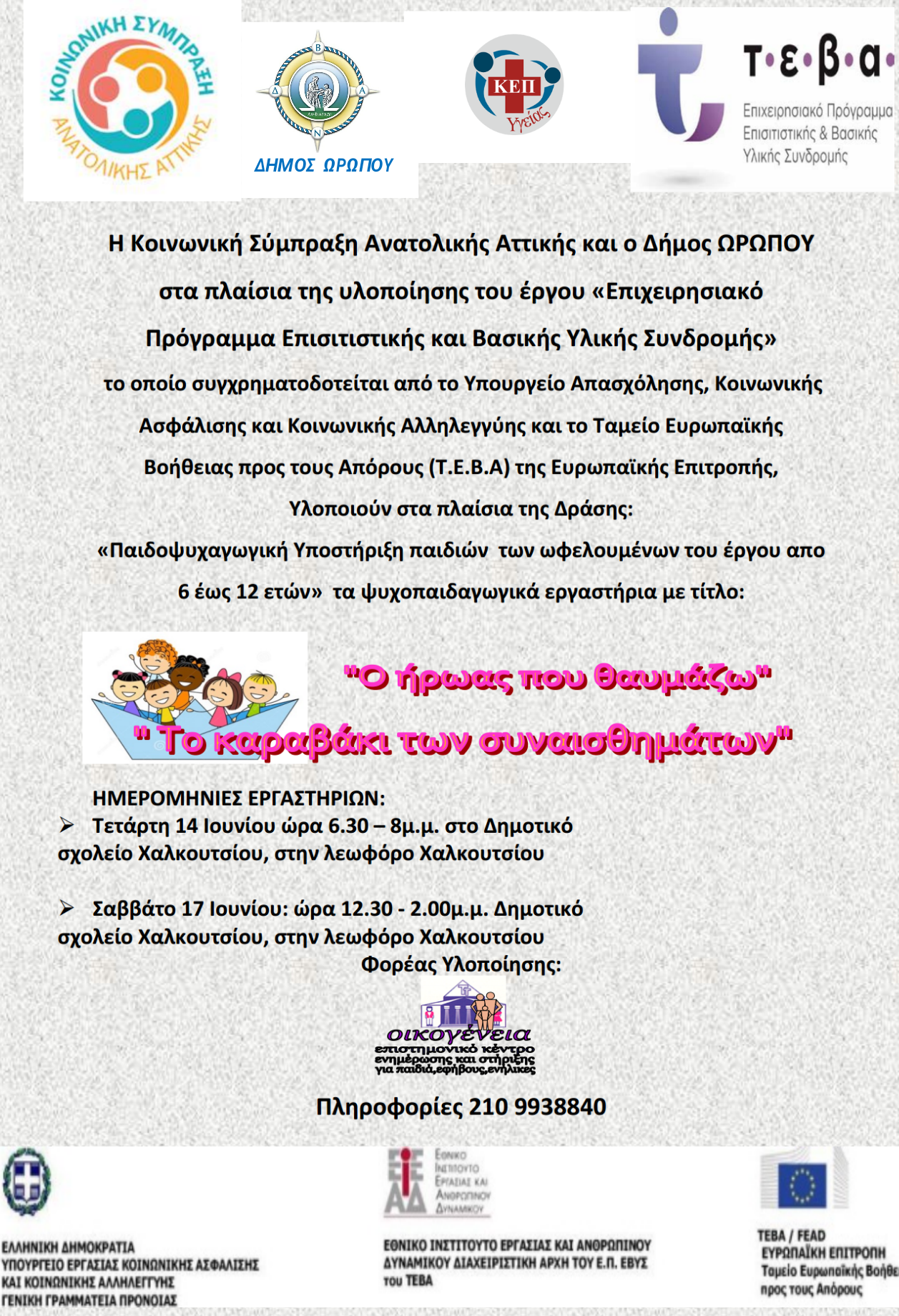 ΔΕΛΤΙΟ ΤΥΠΟΥ - ΔΡΑΣΕΙΣ ΠΑΙΔΟΨΥΧΑΓΩΨΙΚΗΣ ΥΠΟΣΤΗΡΙΞΗΣ ΠΑΙΔΙΩΝ 6 έως 12 ΕΤΩΝ ΜΕΣΩ ΤΗΣ ΥΛΟΠΟΙΗΣΗΣ ΤΟΥ ΕΠΙΧΕΙΡΗΣΙΑΚΟΥ ΠΡΟΓΡΑΜΜΑΤΟΣ ΤΕΒΑ